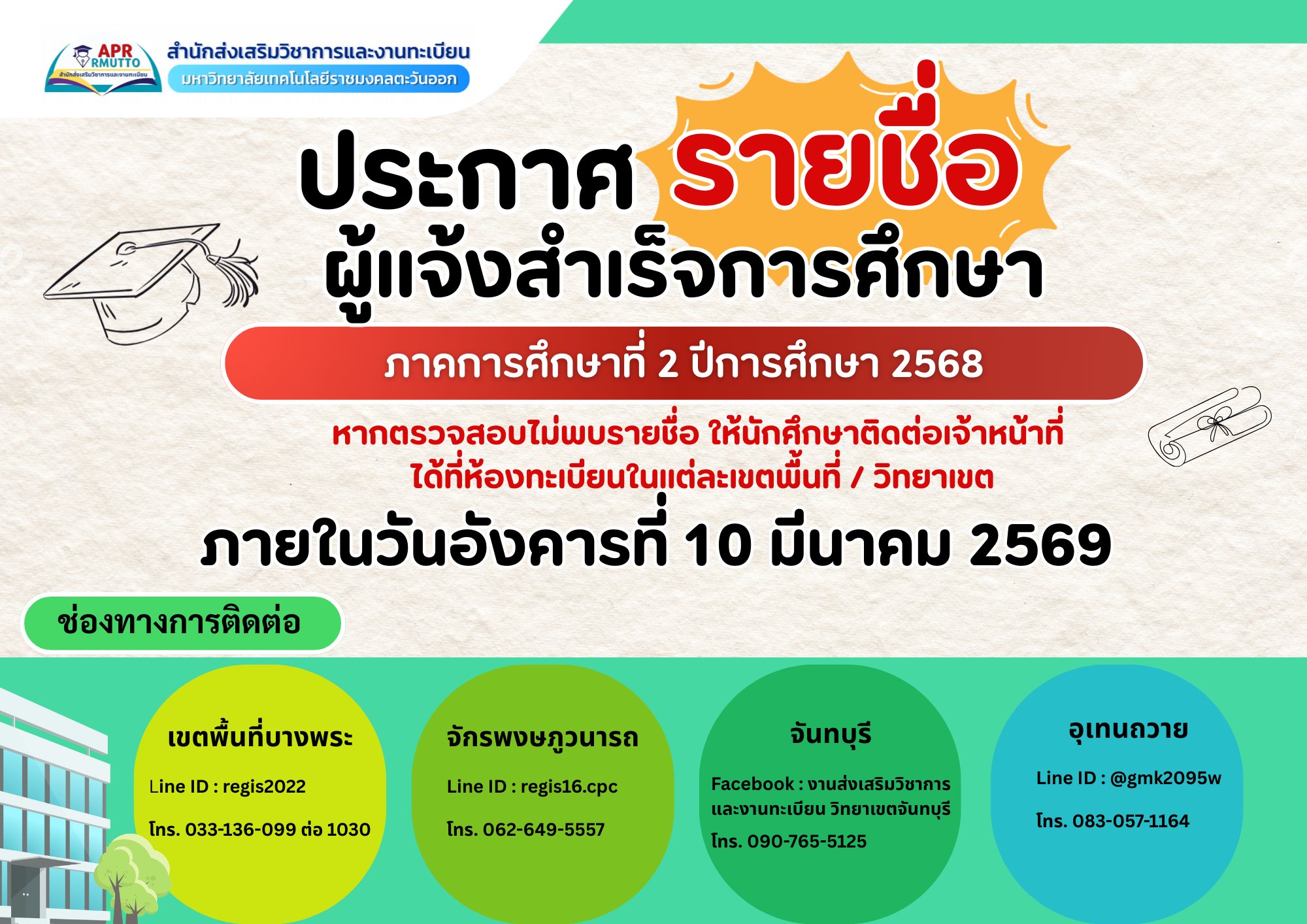 สำหรับนักศึกษาที่แจ้งสำเร็จการศึกษา ภาคฤดูร้อน ปีการศึกษา 2565 (เขตพื้นที่บางพระ)